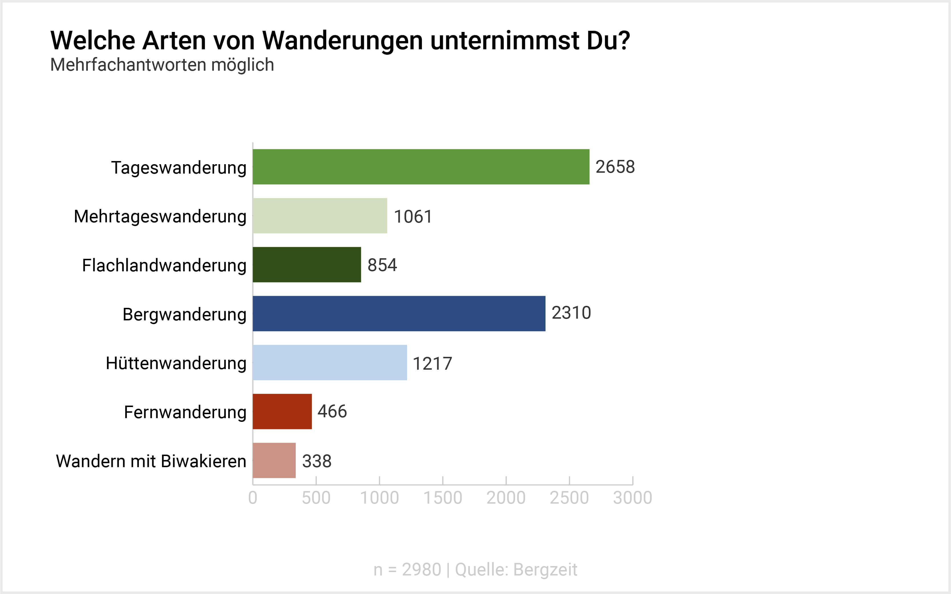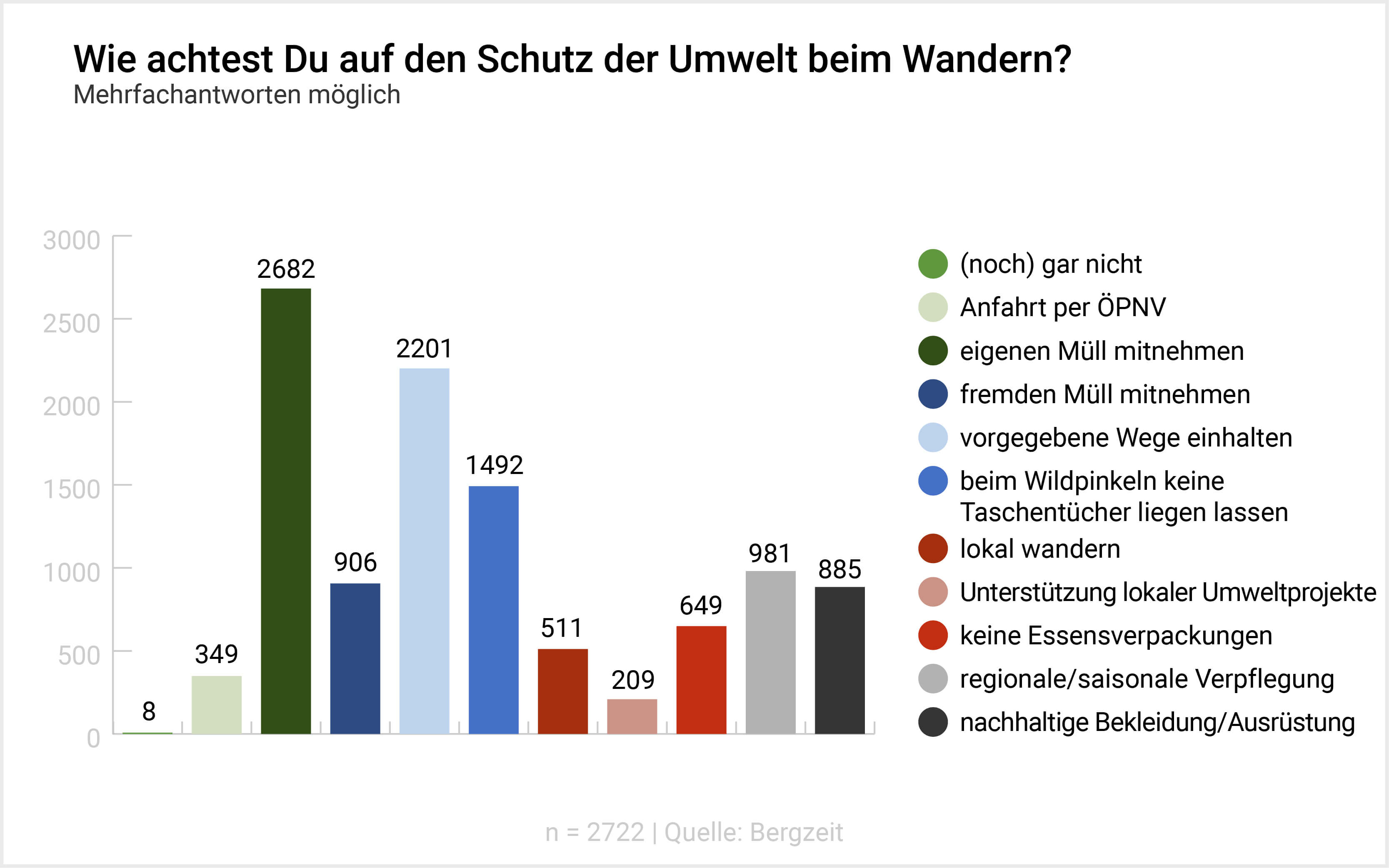 Verwendung der Studienergebnisse: Alle Ergebnisse und Grafiken der Umfrage können kostenfrei genutzt werden. Bei Verwendung ist Bergzeit als Urheber kenntlich zu machen. Für Grafiken, Rohdaten und weitere Infos: redaktion@bergzeit.de